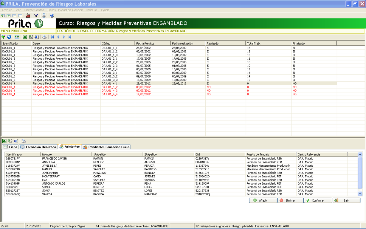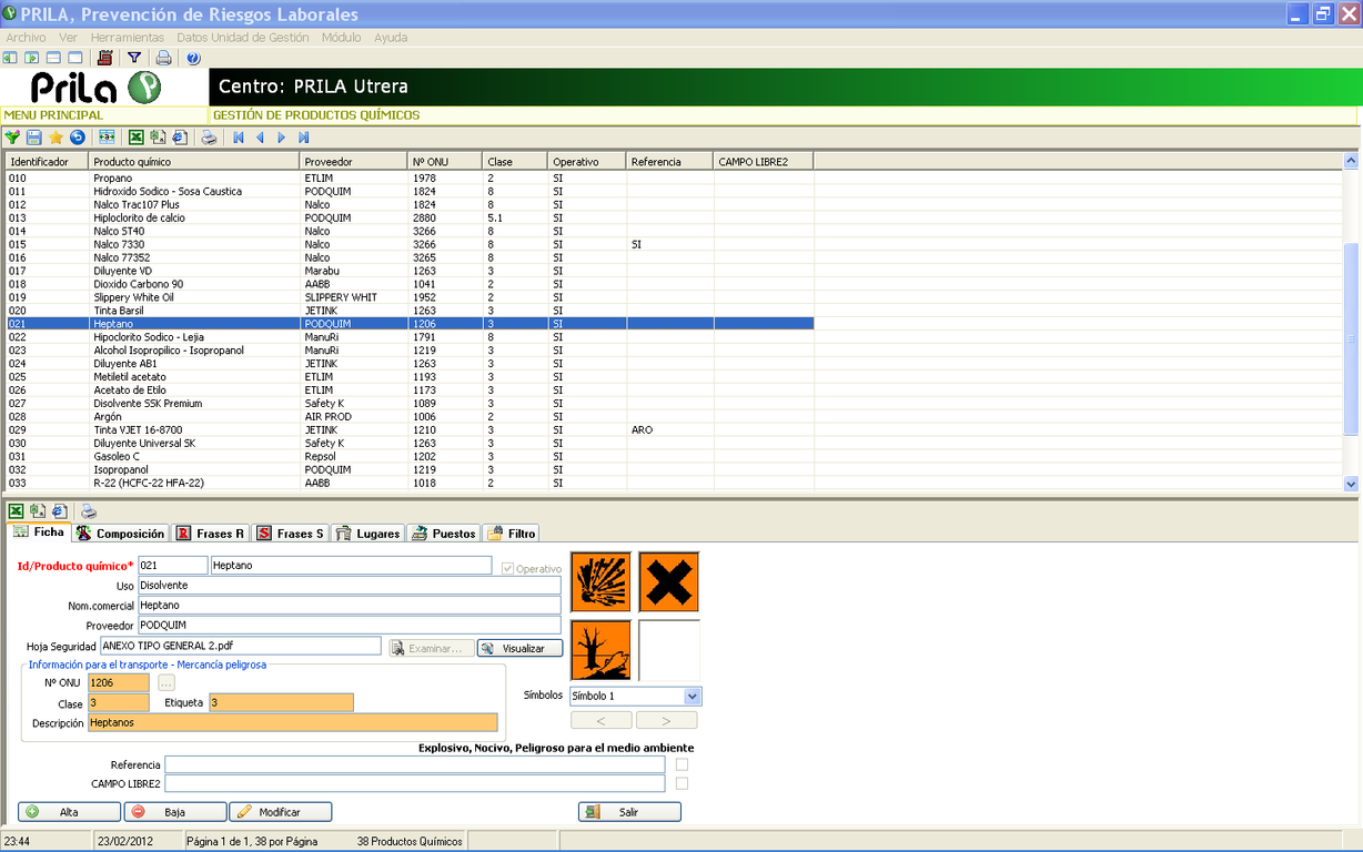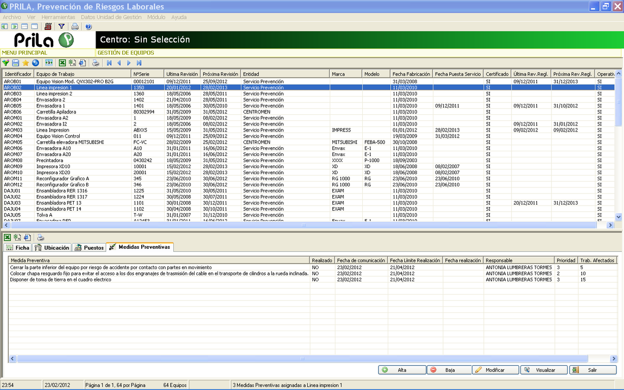 relaciones que ofrece este software es muy amplia, por lo que la tarea del técnico de prevención gana en eficiencia y calidad.
